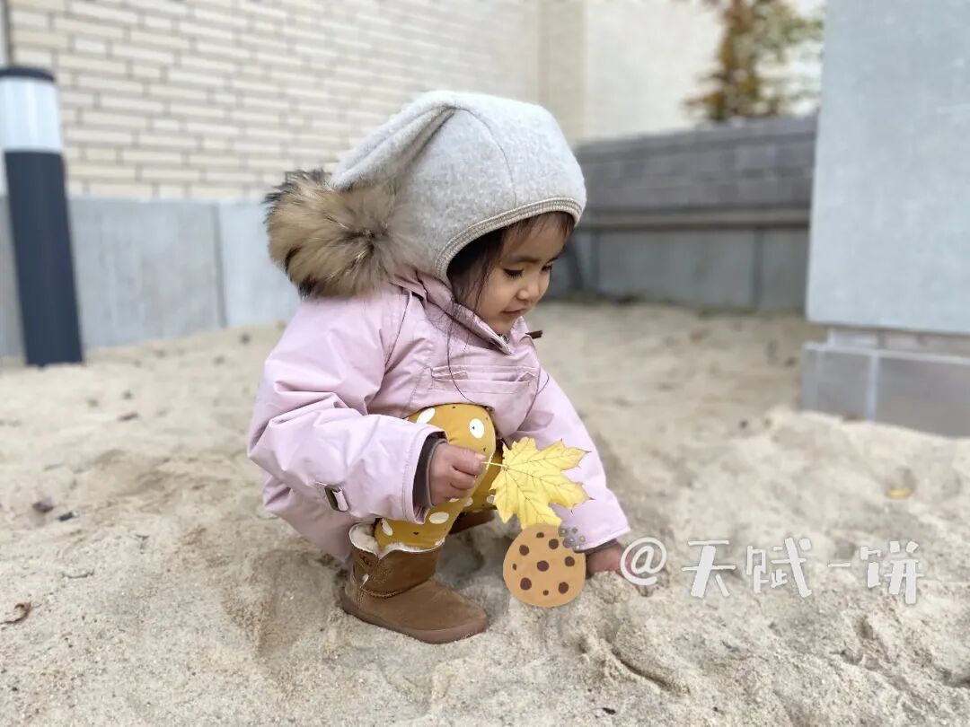 德国现在的气温还不至于戴手套,我想等下雪了,让她戴上堆雪人。