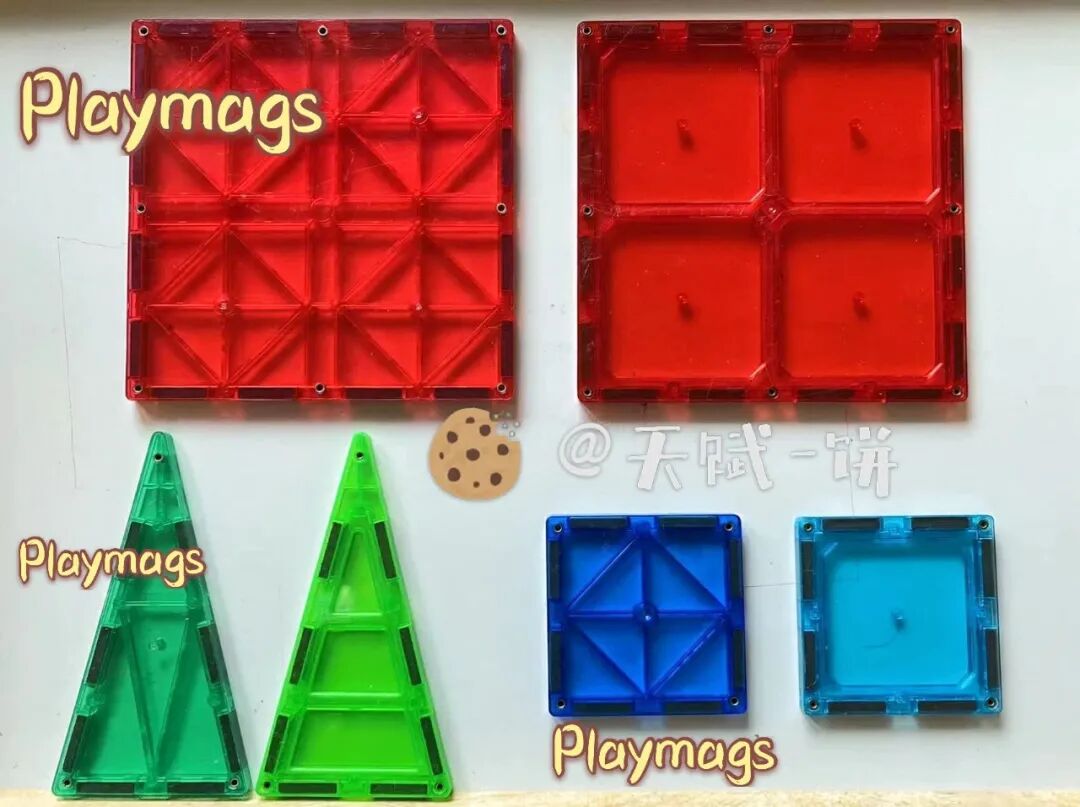 透着光玩,Playmags的三角形框架结构颜值也更高(个人感受)。▼ 左边Playmags,右边其他品牌