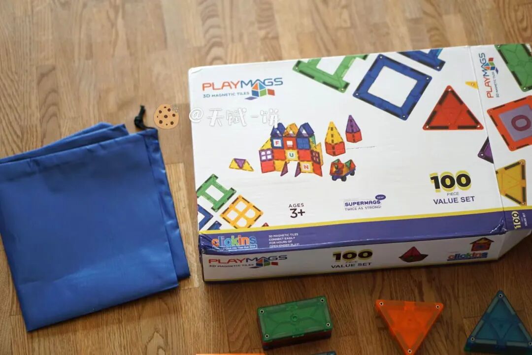 Playmags和大部分品牌的彩窗磁力片兼容,如果你家有了其它彩窗,觉得不够玩,可以补个仓。彩窗和框架大概率不兼容,当然它们也不重复,玩法不同,玩的体验也不同,是完全不同的两种玩具。如果你家有框架磁力片,再入一套彩窗一点都不过分,如果你队友觉得过分,你让他来给我留言,我来教育他。最大的槽点就是包装盒,盒子里面也没个隔断保护啥的,所有磁力片都叠放在一个空间里。收到磁力片后,你先检查一下,如果还没玩表面就有划痕,肯定是运输过程中造成的,这种情况请直接找店铺客服,免费更换。包装盒可以直接扔掉了,盒子是侧开的,没有收纳功能,里面配的收纳袋也挺丑的。![]()