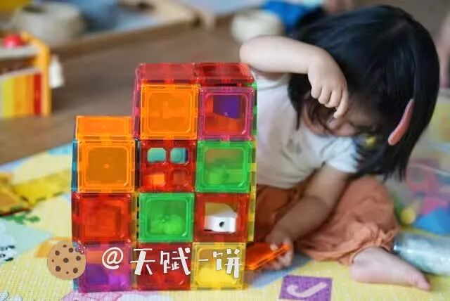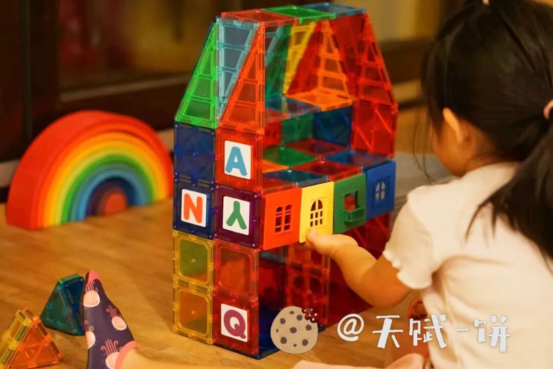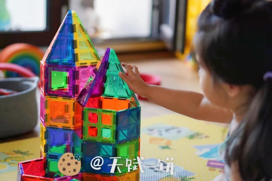 3-7岁3岁开始,饼饼已经非常熟悉磁力片的门道了,我陪她用磁力片玩出了不下100个创意。