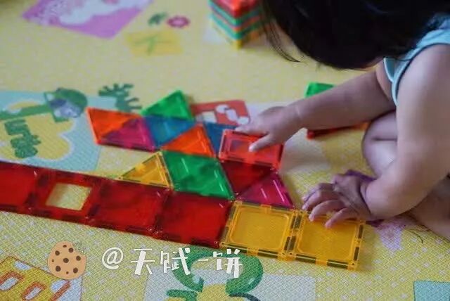 平面铺建磁力片最好玩的是立体搭建,但是2岁多的娃,都是从平面铺建开始玩的。![]()