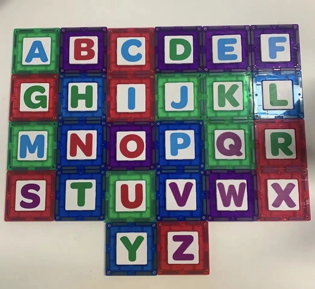 Playmags还有个150件的基础套装,相比之下,我更建议入手两套100件套装,原因有三个。一套100件的玩着嫌少,发挥不出水平,一套150件的不上不下,还是会觉得玩不爽。原因二,无论100件套装还是150件套装,13个字母方块都是双面的。也就是说,如果你想从A到Z摆个字母表,或者某个单词恰好需要正反面的字母,那就没法弄了。两套100件的就可以解决这个问题,正好铺出26个字母。![]()