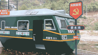 “这是我们碧水湾景点最新完成的一个项目,我们把它叫做共富号001,车身上的‘海宁→莲都’意为感谢海宁对我们的捐资,等我们发展更好了,诚意邀请海宁兄弟姐妹来莲都看看;‘丽水→北京’意为我们在海宁的帮助下一点点富起来,将来大家一起去北京,向党和国家汇报共同富裕的成果。”