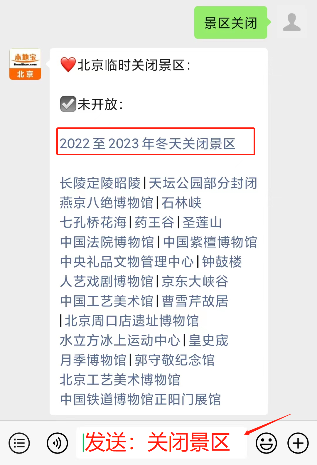 关注【北京本地宝】在首页聊天对话框中回复【景区关闭】可获北京关闭景区名单汇总(实时更新)