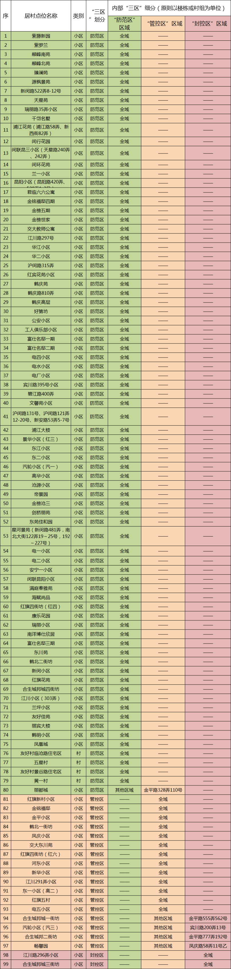 现发布闵行区最新一轮居民小区、自然村“三区”划分情况(信息数据截止时间为5月10日)。