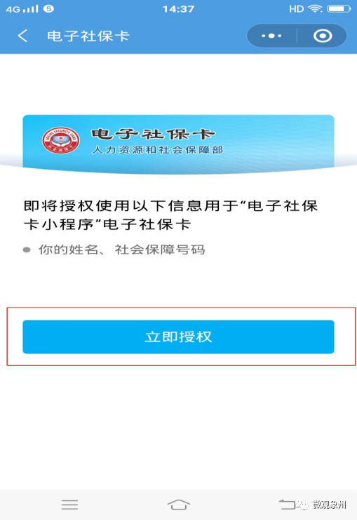 进入图四界面,点击“立即授权”→成功领取电子社保卡