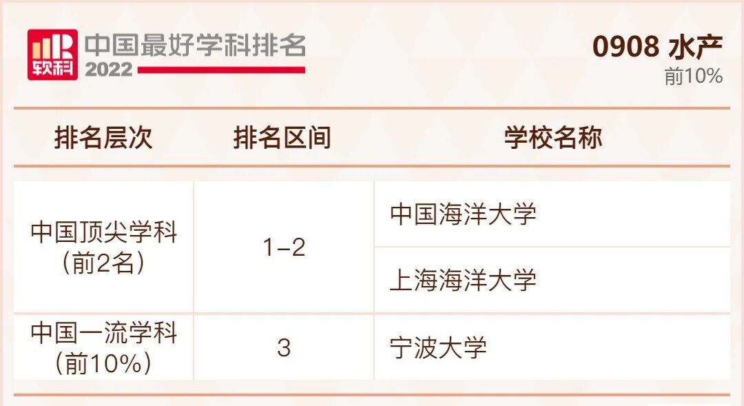 水产学科排名前10%的高校: