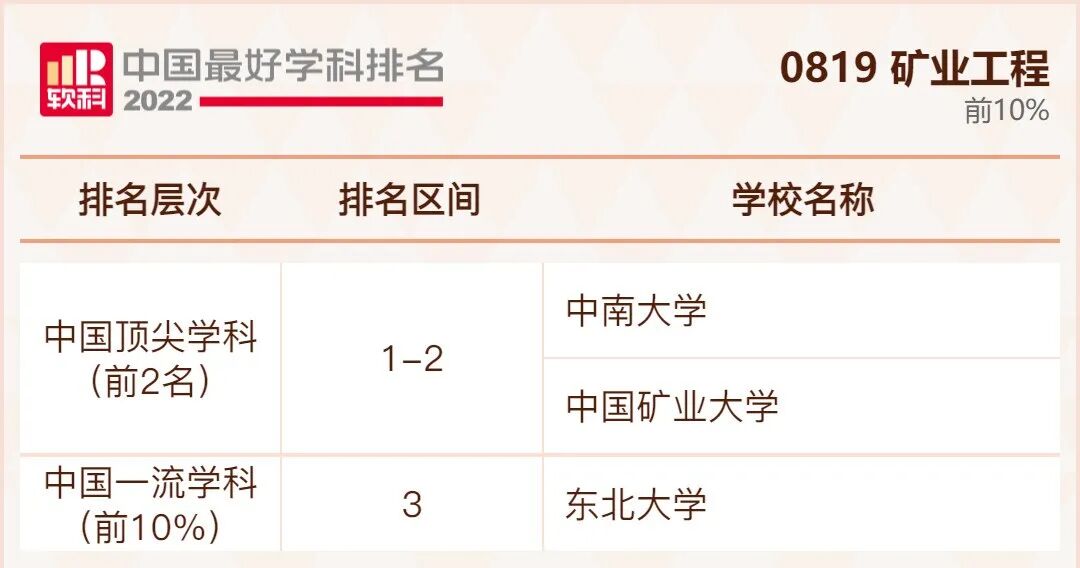 矿业工程学科排名前10%的高校: