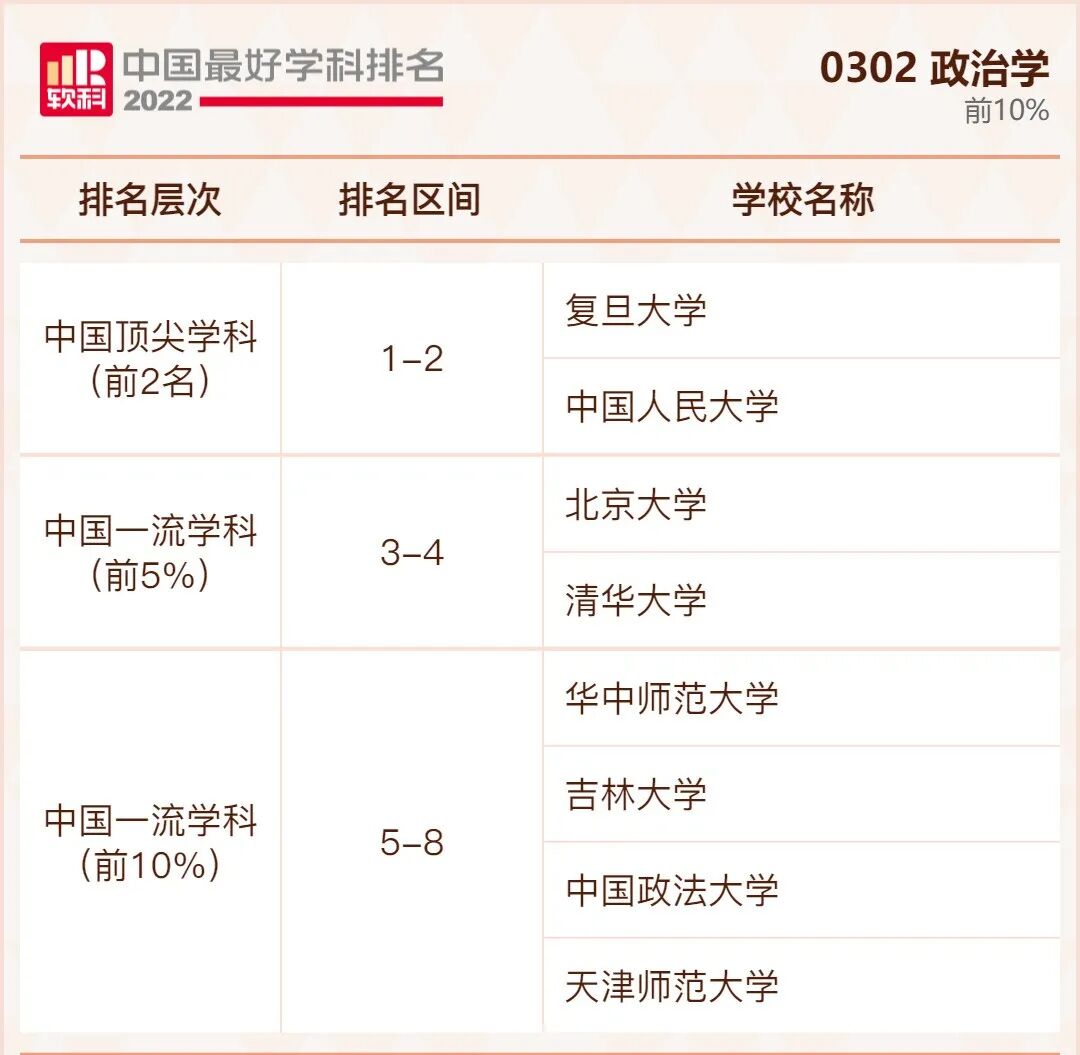 政治学学科排名前10%的高校: