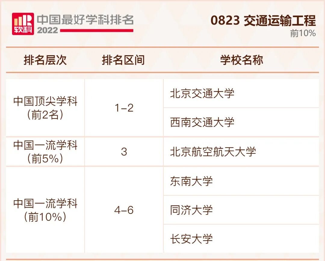 交通运输工程学科排名前10%的高校: