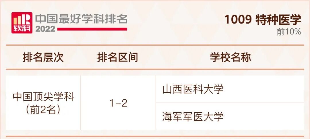 特种医学学科排名前10%的高校: