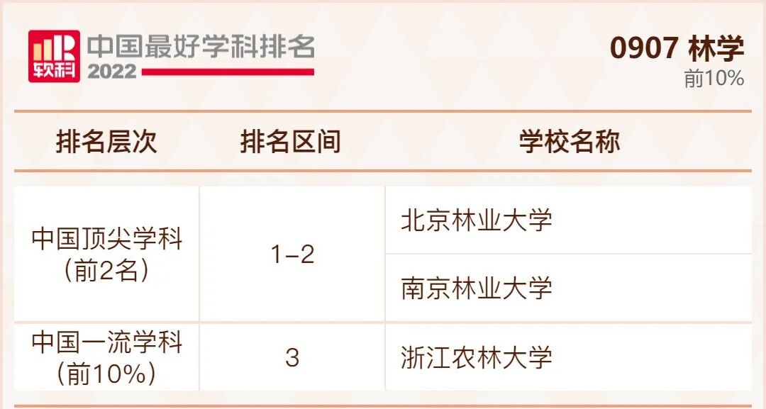 林学学科排名前10%的高校: