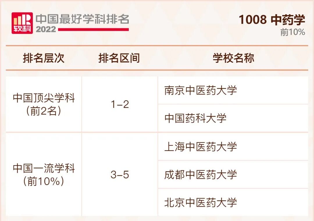 中药学学科排名前10%的高校: