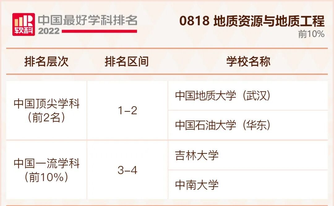 地质资源与地质工程学科排名前10%的高校: