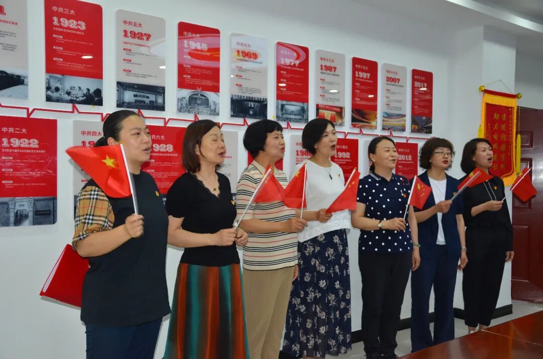 活动最后,全体党员面向党旗,重温入党誓词。随后,一齐高唱《没有中国共产党就没有新中国》、朗诵《祖国,一首唱不完的恋歌》,表达对党的热爱和祝福。