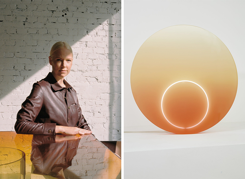 作为本次合作系列中唯一的女性,来自鹿特丹的新西兰设计师 Sabine Marcelis 用柔美的光晕赋予简单设计以独特的美感。她从意大利艺术家Lucio Fontana的划痕画中汲取灵感,设计了两款LED墙面灯饰,如日、似月,蕴含着梦幻和治愈的力量。