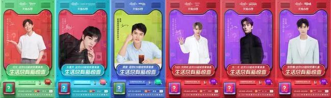 各大电商平台在明星营销上也可谓竭尽所能——晚会营销上演“流量明星抢夺战”、直播间迎来“明星天团”,天猫甚至出了一套“明星X盲盒”的升级玩法:集结近50位品牌超级明星代言人为粉丝亲自准备“惊喜盲盒”,全面激发了粉丝参与热情。