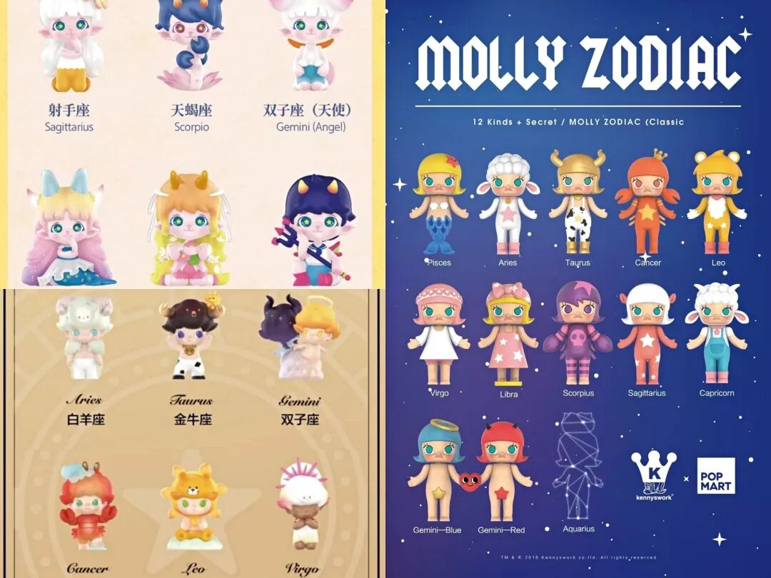 2021 年 2 月,品牌推出 DIMOO 星座系列;同年 5 月,品牌推出 BOBO&COCO 星座系列毛绒挂件;12 月,品牌发售 ZOE 花语星座系列