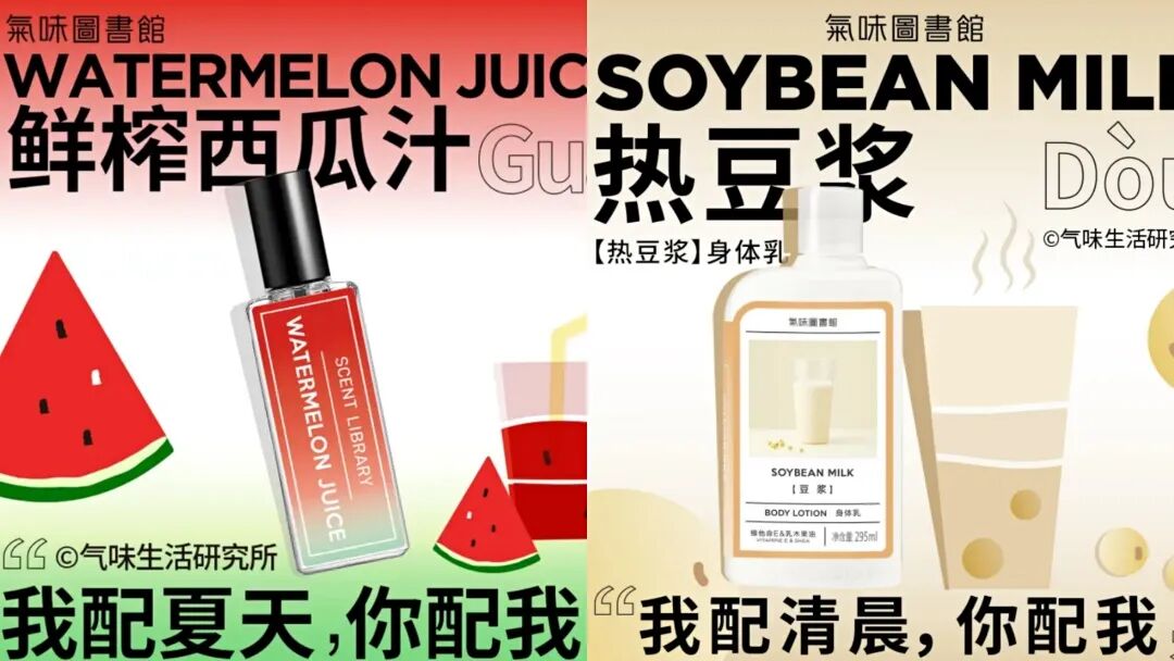 气味图书馆首先开始了尝试,选择了“朴实、日常、大众”的方向。2017 年,品牌推出“凉白开”系列,灵感源自 20 年前中国家庭用铝壶烧水的情景。这一代表了 80 后童年记忆的味道,在 2018 年双 11 卖出了 40 多万瓶,全年累计销售超 100 万瓶,系列产品的销量也占到品牌整体销量的三成以上,成为名副其实的大单品。此后,气味图书馆又陆续推出以了热豆浆、西红柿拌白糖、鲜榨西瓜汁等为灵感的、深入国内人群气味记忆的产品,并在“大白兔”系列上再获成功,又一次将国内主流消费群体的集体记忆和情感具象化。