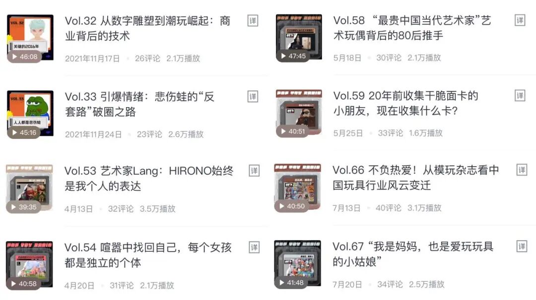 在与刀法见面前,她已经在荔枝播客上统筹更新了 67 期的《POP TOY RADIO》——泡泡玛特围绕潮玩和泛潮流文化出品的播客节目。