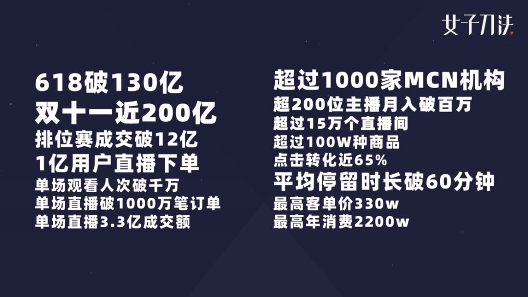 图片左侧是淘宝直播做到的一些成绩: