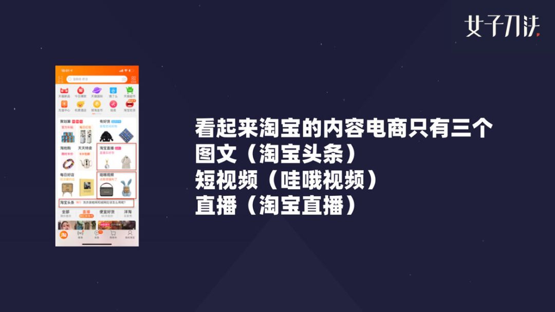 淘宝里面的内容形式很简单,就是图文、短视频和直播。