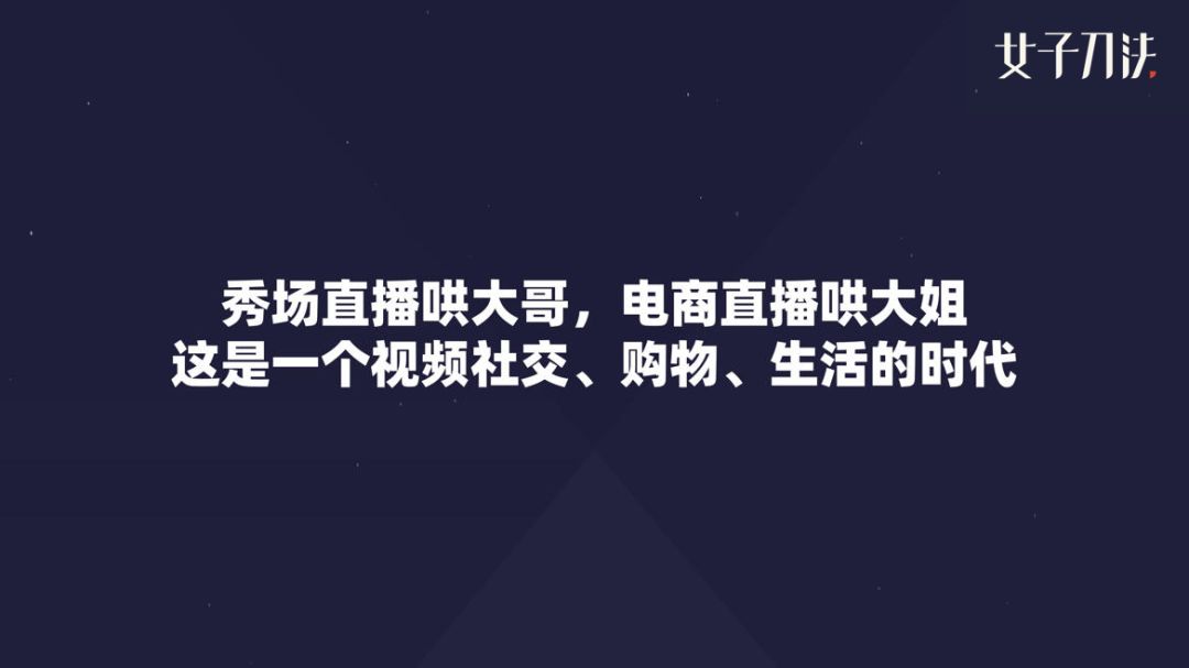 总结一下,现在的阶段还是秀场直播哄大哥、电商直播哄大姐的时代。眼下是视频社交+购物+生活的时代。
