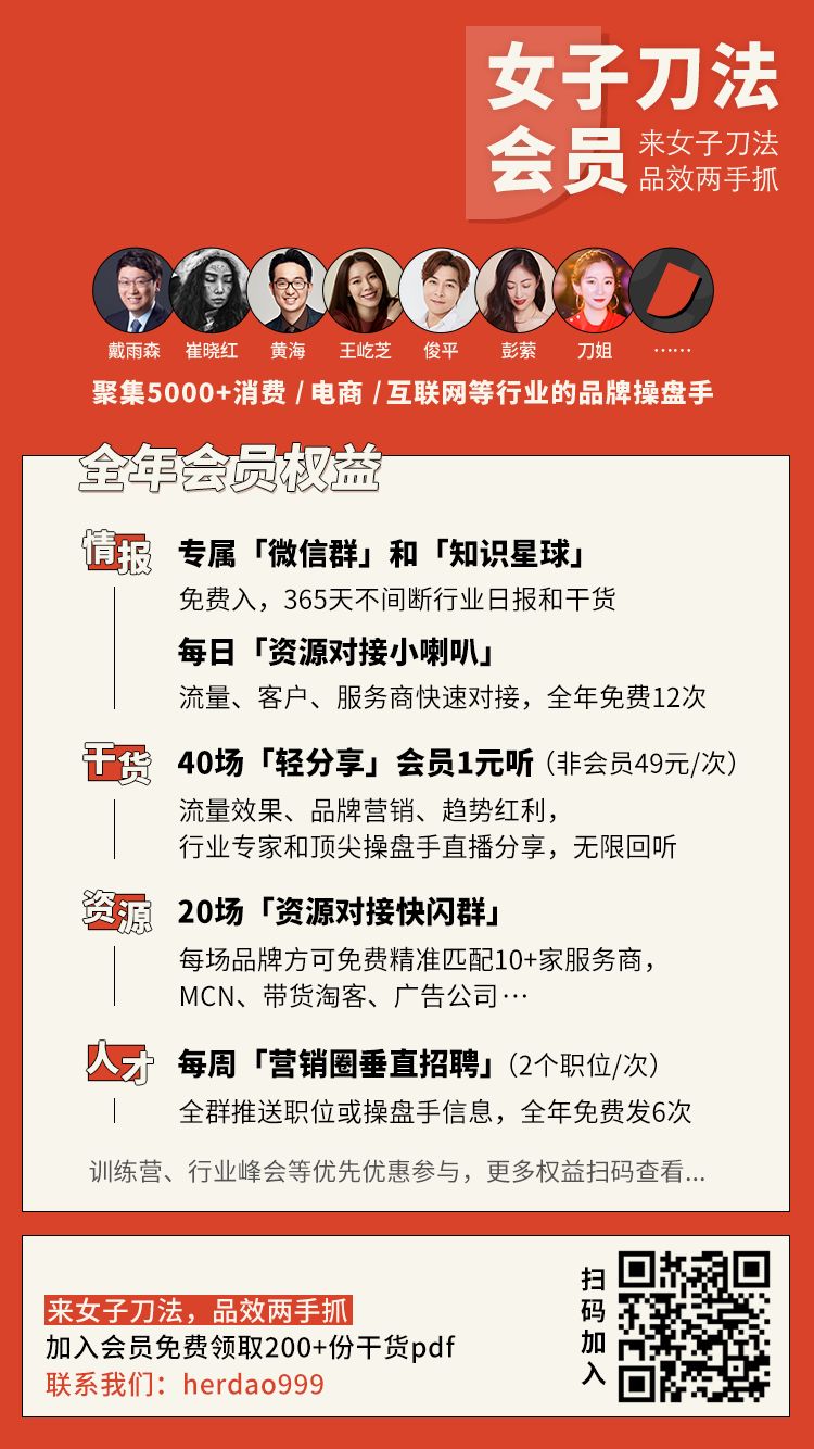 如果你对企业营销、中国新消费的未来感兴趣,欢迎加入我们成为女子刀法会员!