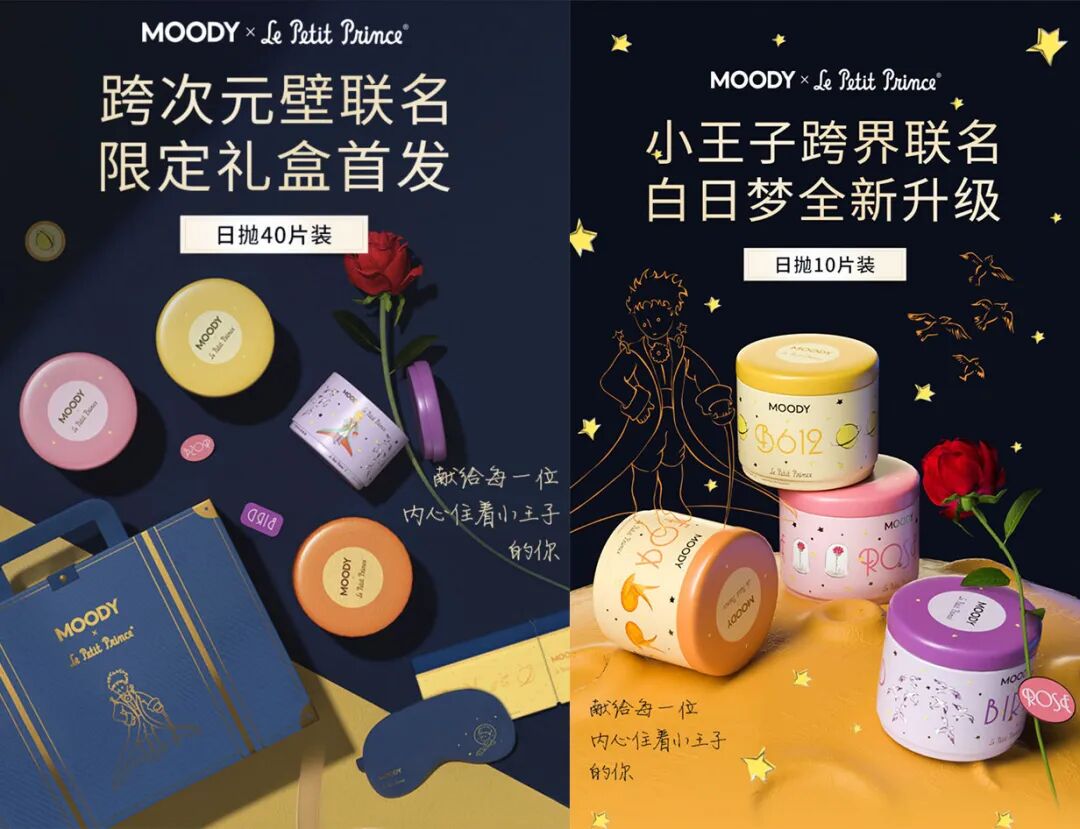 在这点上,目前几家比较火的新美瞳品牌做得都不错。比如Moody推出的小王子联名款,以及和永璞咖啡打造的联名款礼盒,销量都很高。