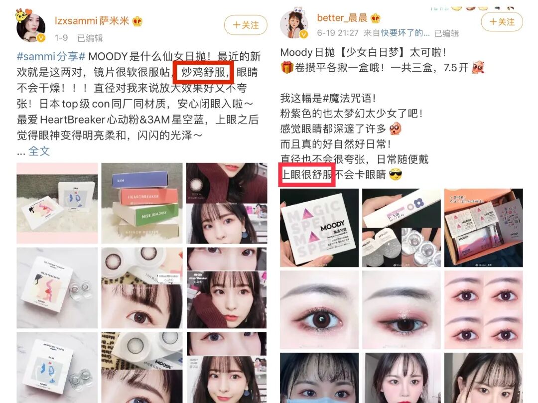 在长期的内容营销下,美瞳品牌可以完成对消费者的市场教育,不仅让近视人群购买美瞳,更让不近视人群用买彩妆的心态去买彩片。