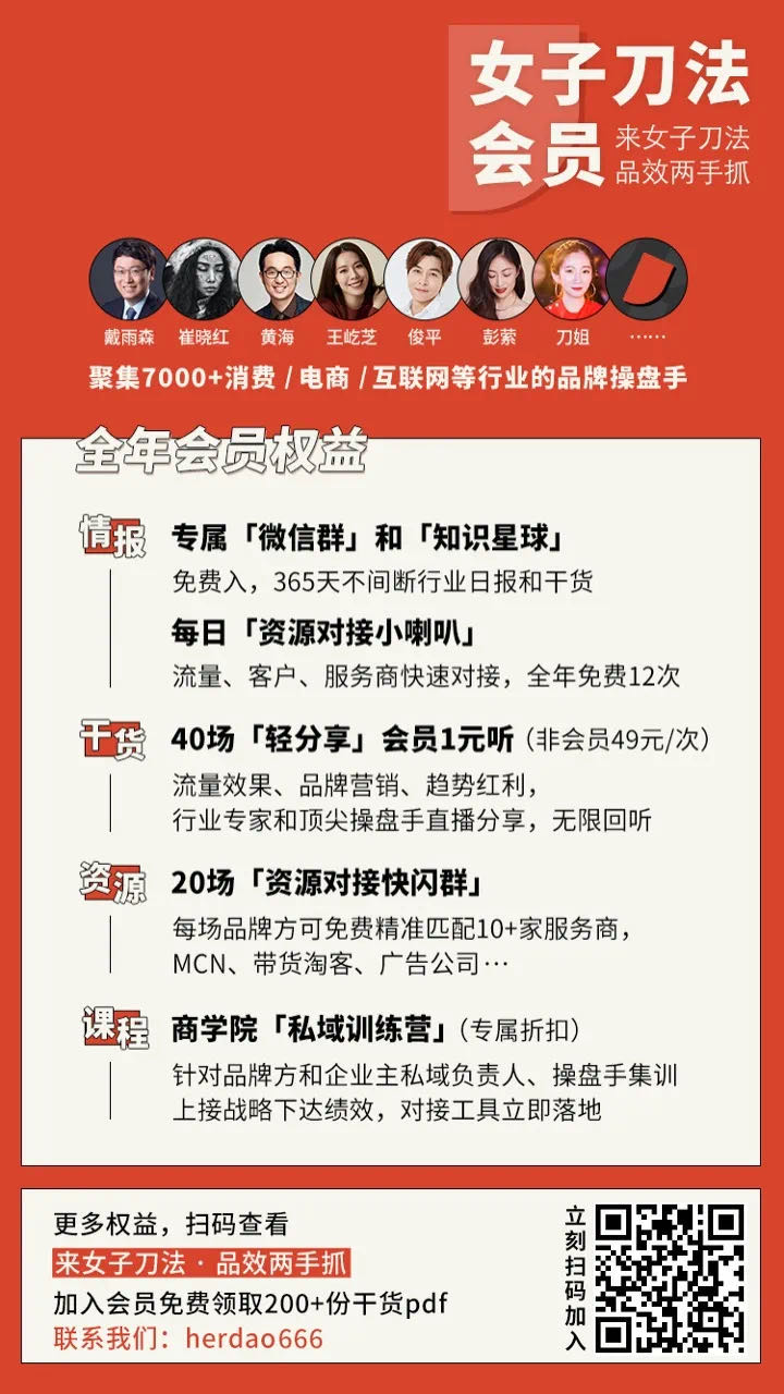 女子刀法研究所是专门聚焦新消费与新营销的赋能平台,我们洞察新消费品牌、总结营销方法论,成就中国好品牌。