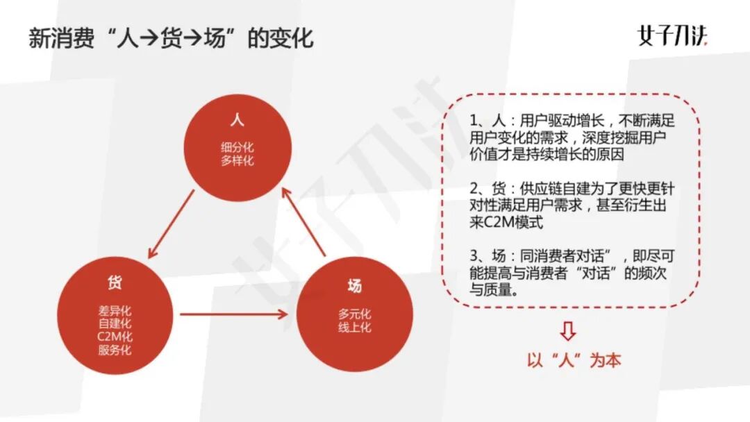 结合上述现象,我们可以发现新消费的变化体现在人、货、场三个角度。