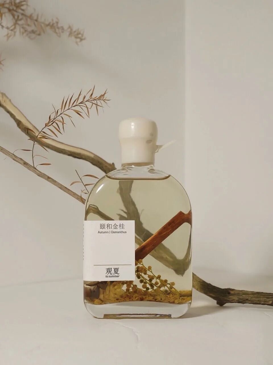而观夏的“东方新摩登”,便是在产品上除了自身Logo,只大胆留下“桂”、“昆”、“茉”、“西溪桃花”这些汉字产品名,其余地方大面积留白。这样的风格,不仅是极简风的美学诠释,更能直接体现出观夏立足于东方文化的血缘根脉。