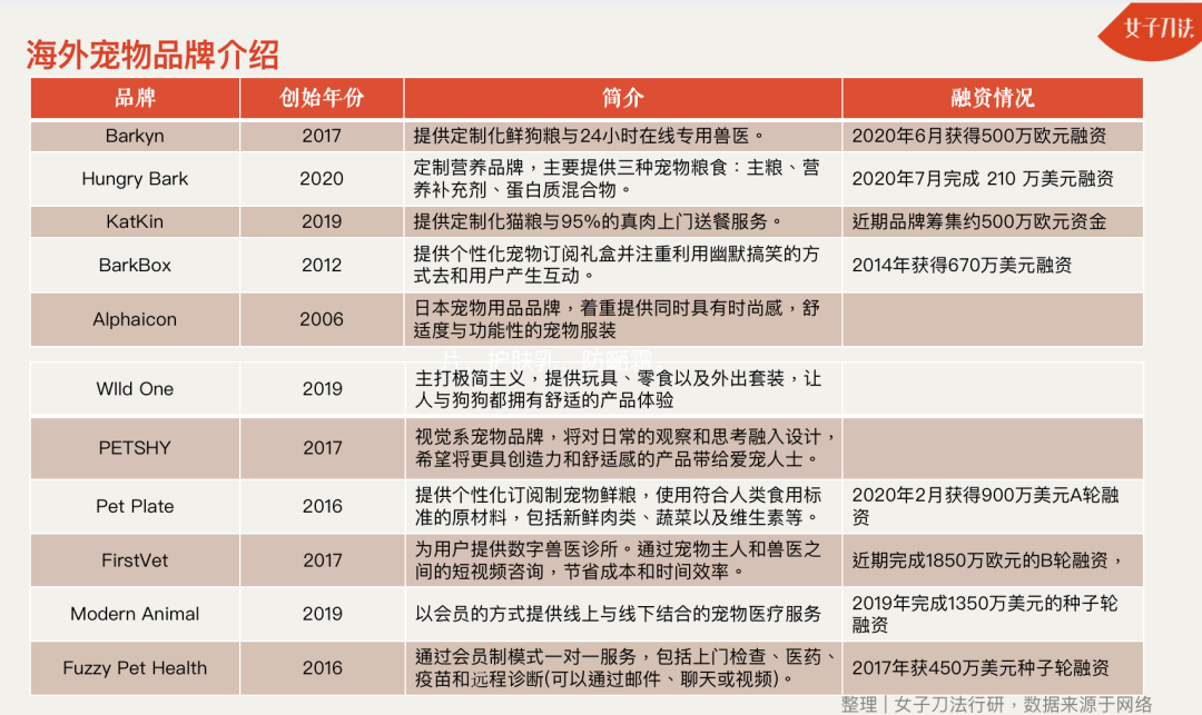 海外宠物品牌信息梳理,制图 | 女子刀法研究所