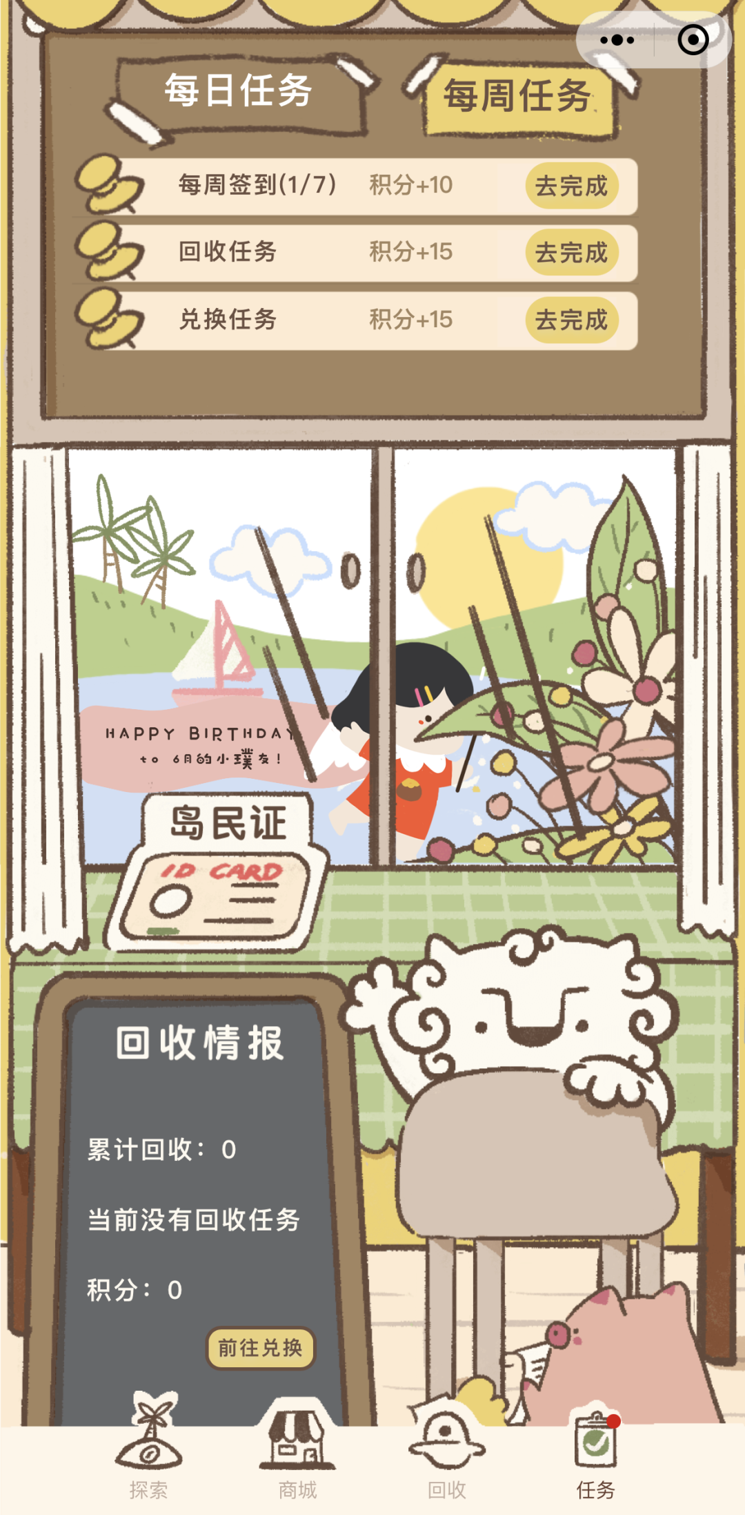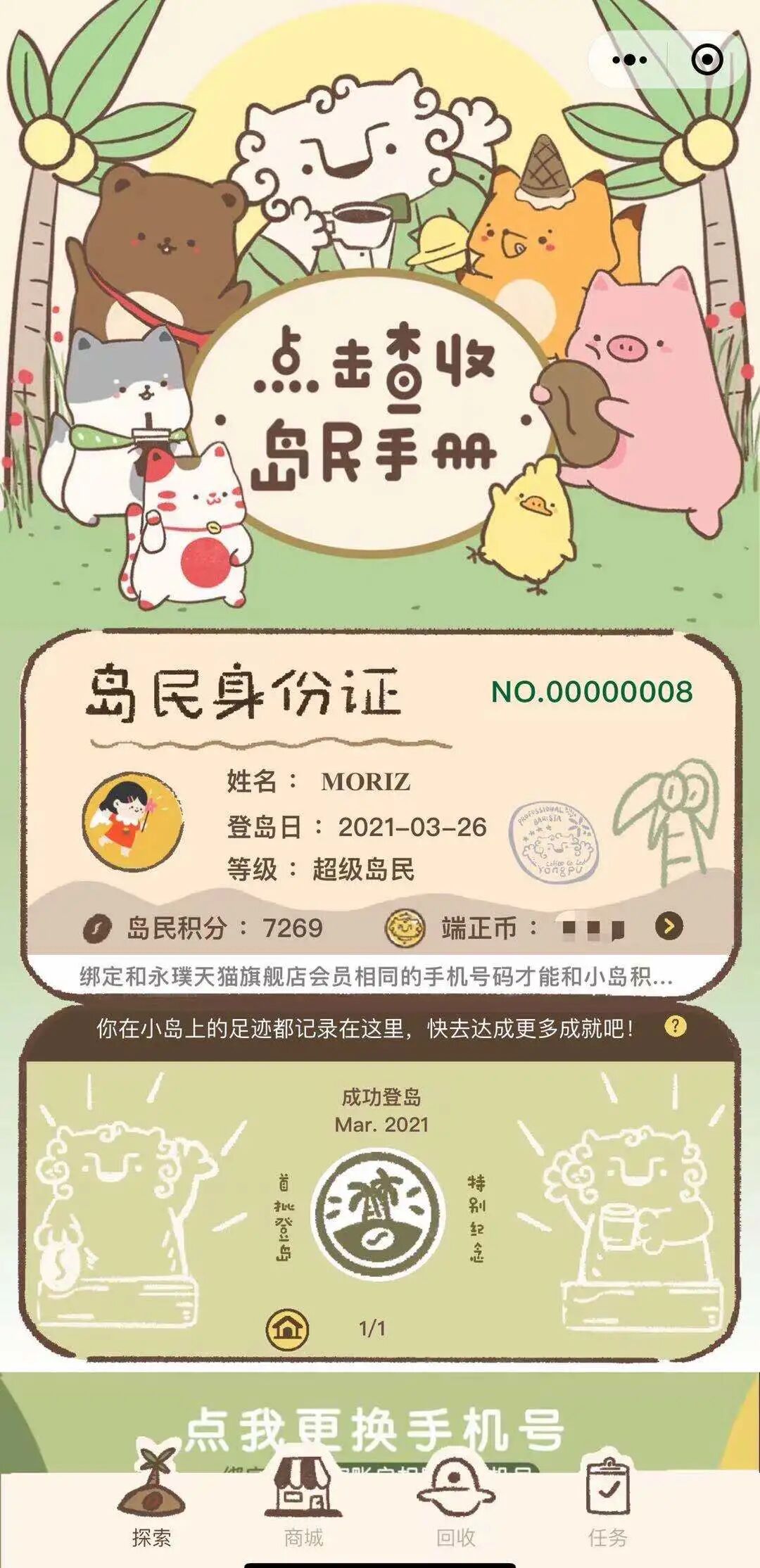 本次的盲盒联名还引入了“永璞小岛”概念。它是品牌基于精细化运营私域需求,于今年6月上线的小程序。目前,品牌将这个小程序定位为“供用户逃开现实世界的休憩空间”,不会主动引导消费,同时大家在其他渠道购买产品的积分也可以在小程序上兑换商品。