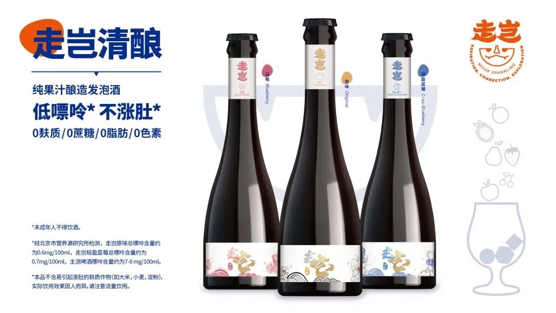 成立于2020年4月的走岂清酿,是一个纯果汁酿造的类啤酒新酒饮品牌。走岂创造性地提出“清酿”概念,通过创新酿造工艺,仅使用酵母和纯果汁两种原料,成功研制了接近啤酒的口感的清酿产品——其气泡感和酵母的香气与啤酒非常类似,却具备“低嘌呤、不胀肚、不易宿醉”的减害减负担特质。这款清酿产品,也成为了走岂开创“啤酒”3.0时代的敲门砖。