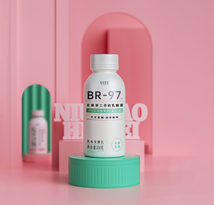不同于市面上大多数选取澳洲进口的鱼皮胶中的胶原蛋白,NO ONE 胶原蛋白酸奶中添加的胶原蛋白肽萃取自四川阿坝州新鲜牛骨,提供更高的活性;同时,品牌从全球数千株乳酸菌中挑选两种具备“抗肥胖”特性的益生菌添加进 BR-97 酸奶中, 并为其申请了专利,让这一酸奶成为“身材管理新方针”。