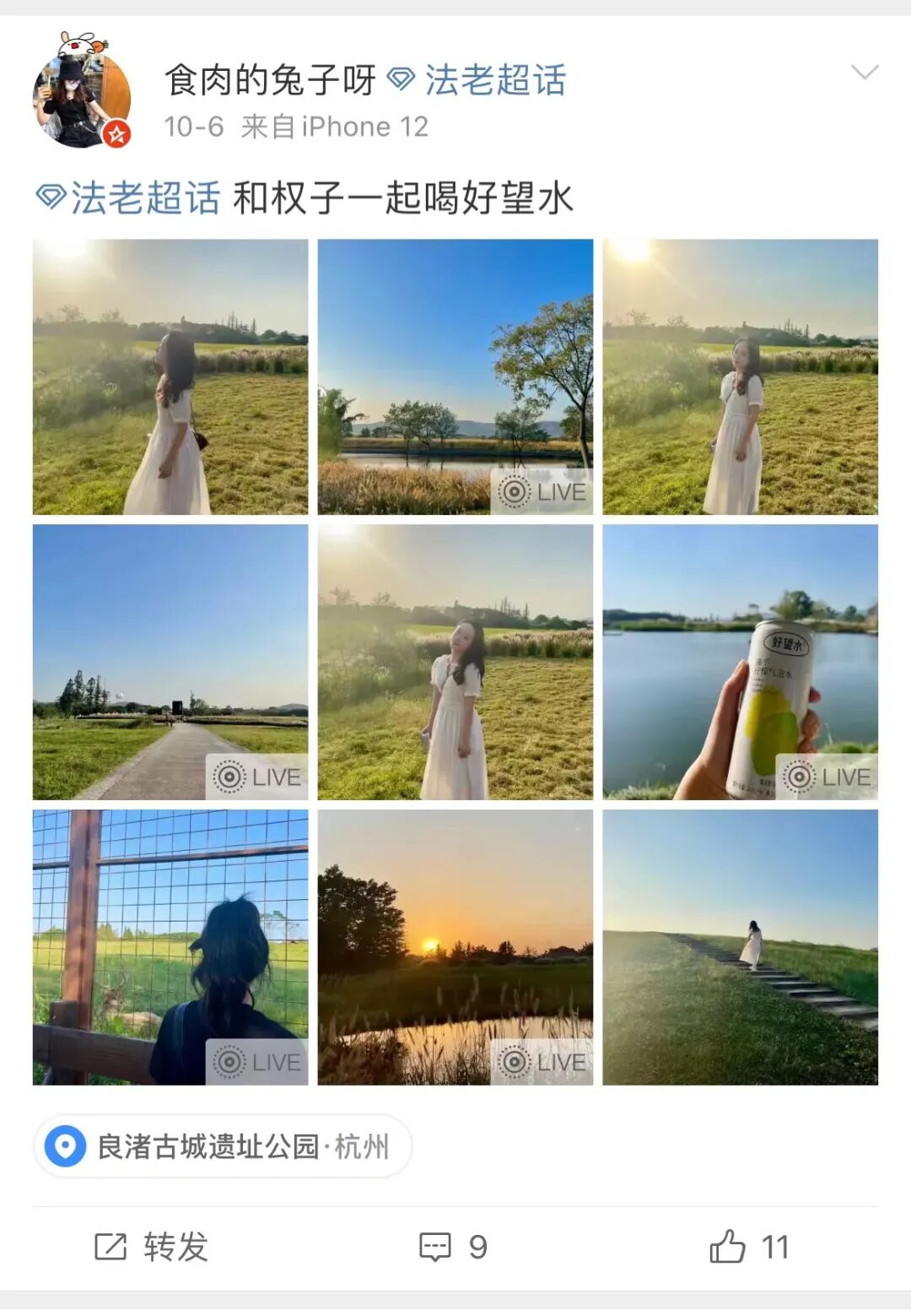 再比如我们和法老的合作,选择他是因为我们的气泡水铝罐的定位比望系列更年轻,整一个产品定位是“养生朋克”,加上之前我们沟通的内容点吸引来更多是宝妈,文艺青年,我们希望这次潮流年轻人能看到我们的品牌和产品,他在 rapper 圈流量很好,所以就选择了他。
