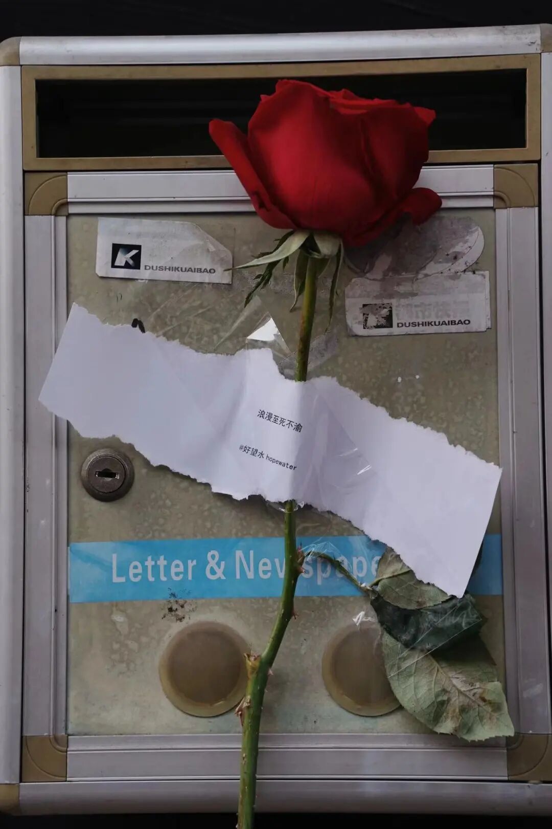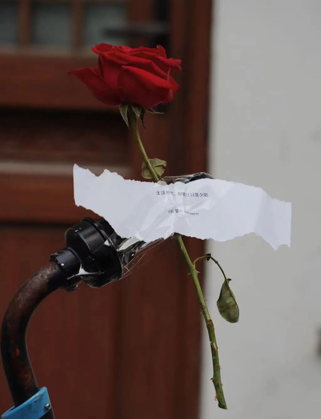 做这件事的发心是,品牌小伙伴觉得双 11 的购物氛围太浓,想要在这个环境里做一些不一样的事情,告诉消费者,双 11 除了网上购物它还是光棍节。所以组织了这个线下快闪活动,我们把一些话写在小纸条上,和花一起贴在城市角落,希望给这座城市制造点浪漫。