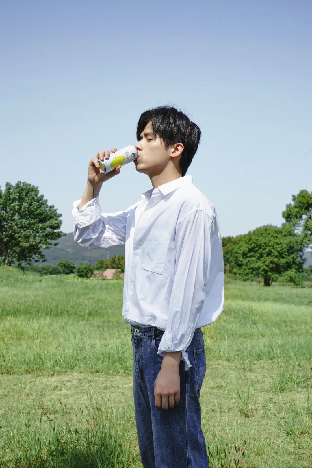 线下需要主推饮料套餐绑定,所以强化了“山楂和小龙虾”的组合搭配。拍摄的置景思考是想要把线下店的氛围搞出来,但是有考虑到饮料自己比较自然的调性,于是就把商店搬到了草坪上。