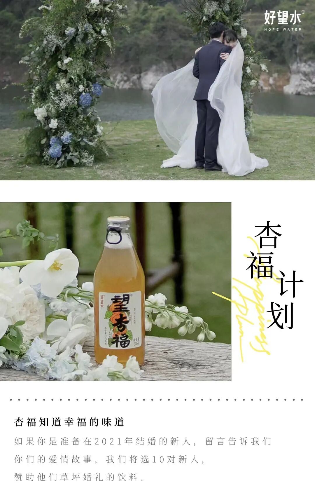 所以我们就顺势做了一些赞助草坪婚礼的活动,发起了“杏福计划”,见证 100 场婚礼的杏福瞬间,加强消费者的场景认知。当然这些内容也会被二次传播。