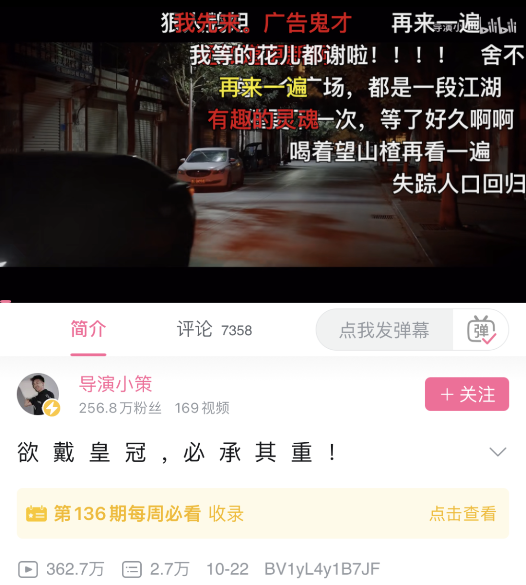 比如我们最近做的 B站导演小策的合作,B站 up主的粉丝粘性、真实性都很高,而且用户很年轻,从流量上看虽然价格贵,但是用的好可以帮助品牌破圈。