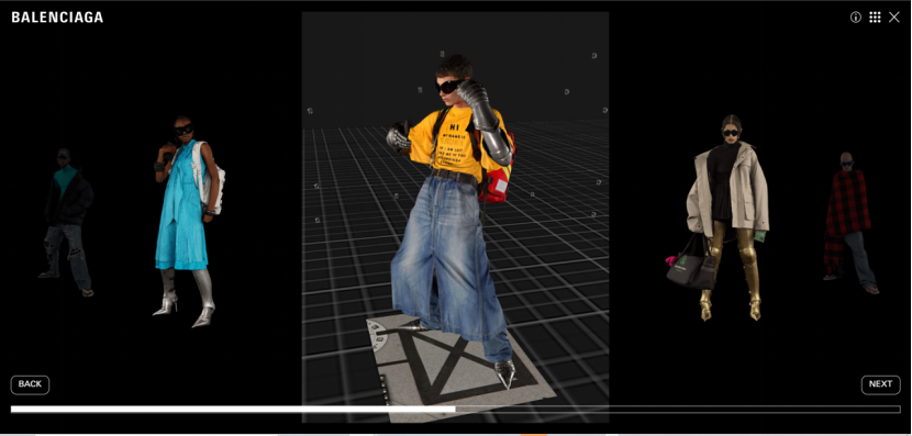 巴黎世家 21 秋季系列,用户可以从各个角度,更全面、立体地看到成衣细节和上身效果