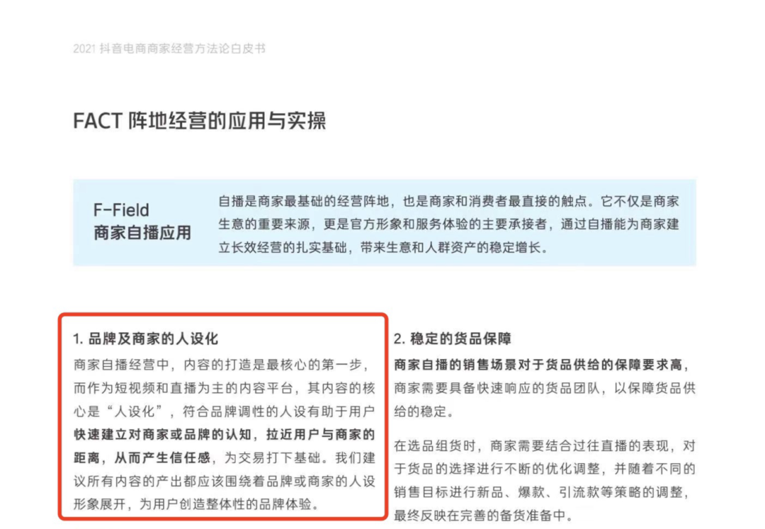 抖音在《2021 电商商家经营方法论白皮书》中也明确表示,所有内容的产出都应该围绕着品牌或商家的人设形象展开,为用户创造整体性的品牌体验。