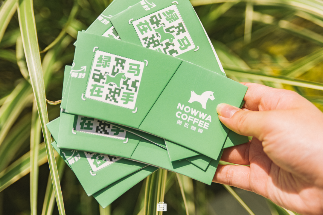 近期上海复工,挪瓦咖啡也同步更新了门店“皮肤”。品牌的小马 logo 本来不是绿色的,但我们将所有恢复营业的门店可表达的部分全换成了绿色,包括线下门店电子屏、咖啡杯套,线上小程序、外卖店铺等等,主要传达一种“保护你的绿码”的含义。