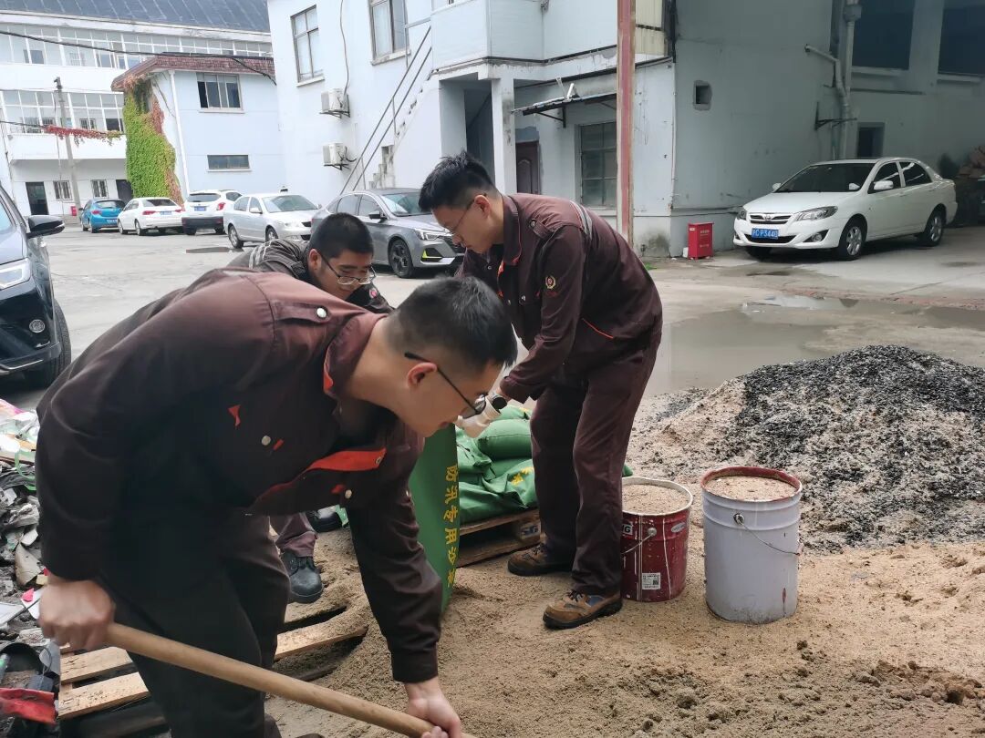 对货场内各点进行安全巡查,对大型机械设备、货场内货物托盘进行防湿加固并组织人员清除轻飘物。