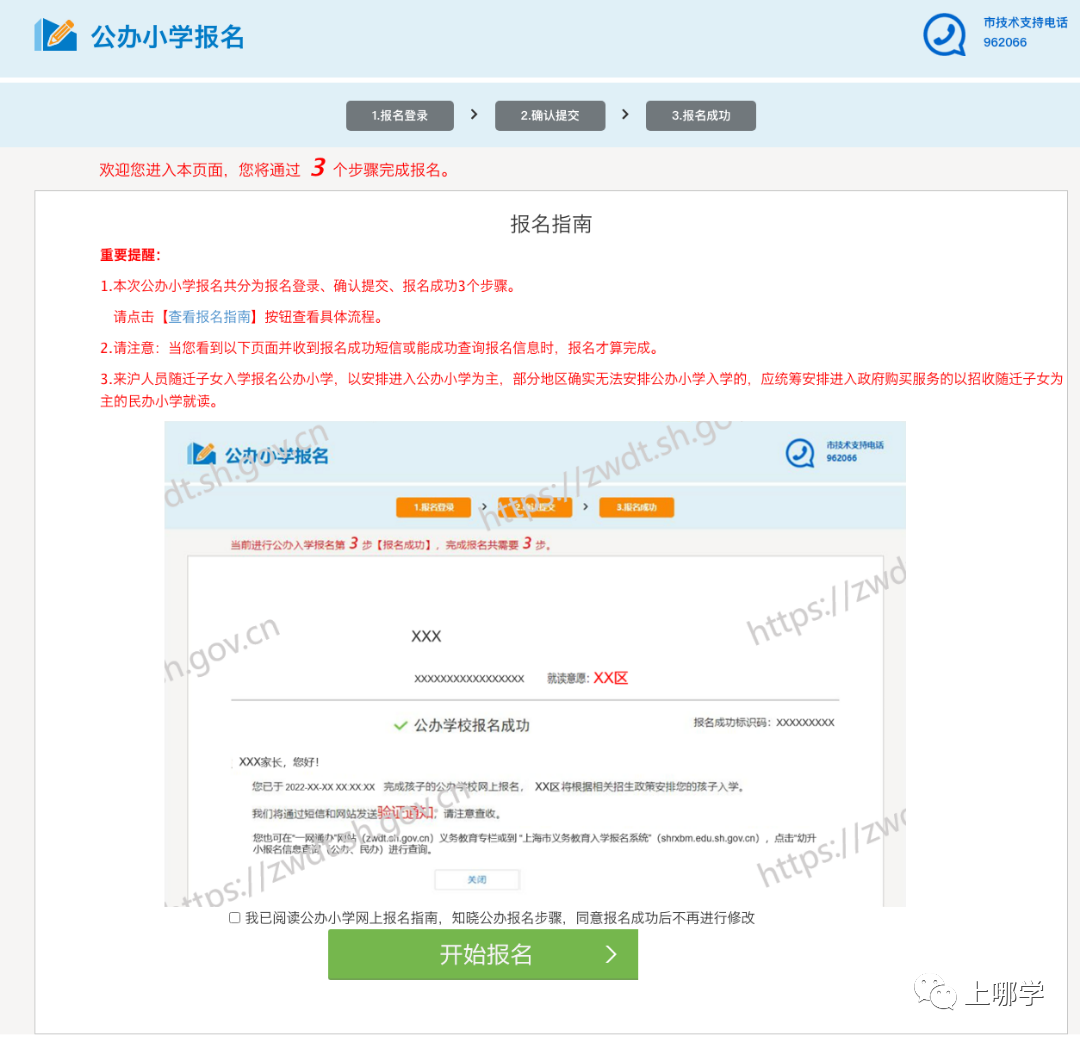 家长须仔细阅读本页面并勾选“我已阅读公办小学网上报名指南,知晓公办报名步骤,同意报名成功后不再进行修改”后方可正式报名。