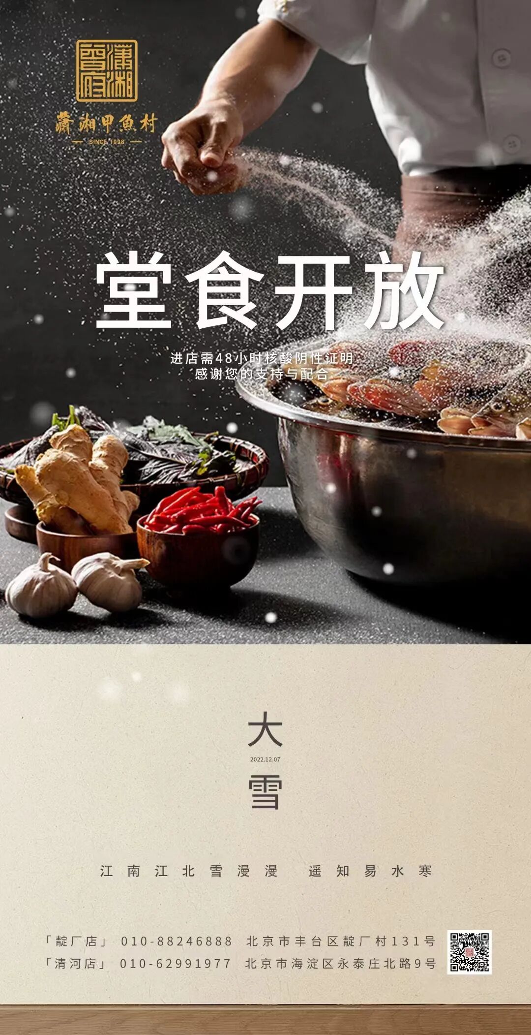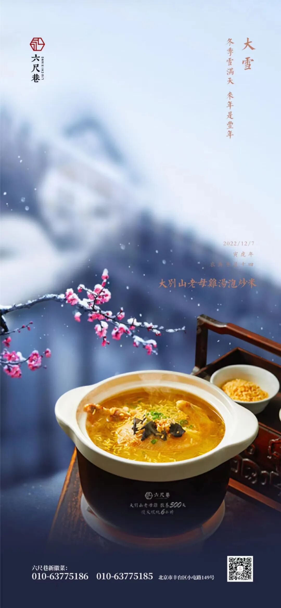 大雪,是二十四节气中的第21个节气,特点是气温显著下降、降水量比增多,民俗有腌肉、打雪仗、赏雪景、进补。俗话说:冬天进补,开春打虎。大雪是“进补”的好时节,冬天进补能提高人体的免疫功能,促进新陈代谢,使畏寒的现象得到改善。大雪来临,冬寒已至 ,万物且藏,与山河共待漫天银色,在热气腾腾中,唤醒冬日里丰味的所有温暖。