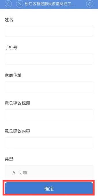 在“推荐”页面找到“松江区新冠肺炎疫情防控工作问题建议征集平台”,点击进入填报页面;