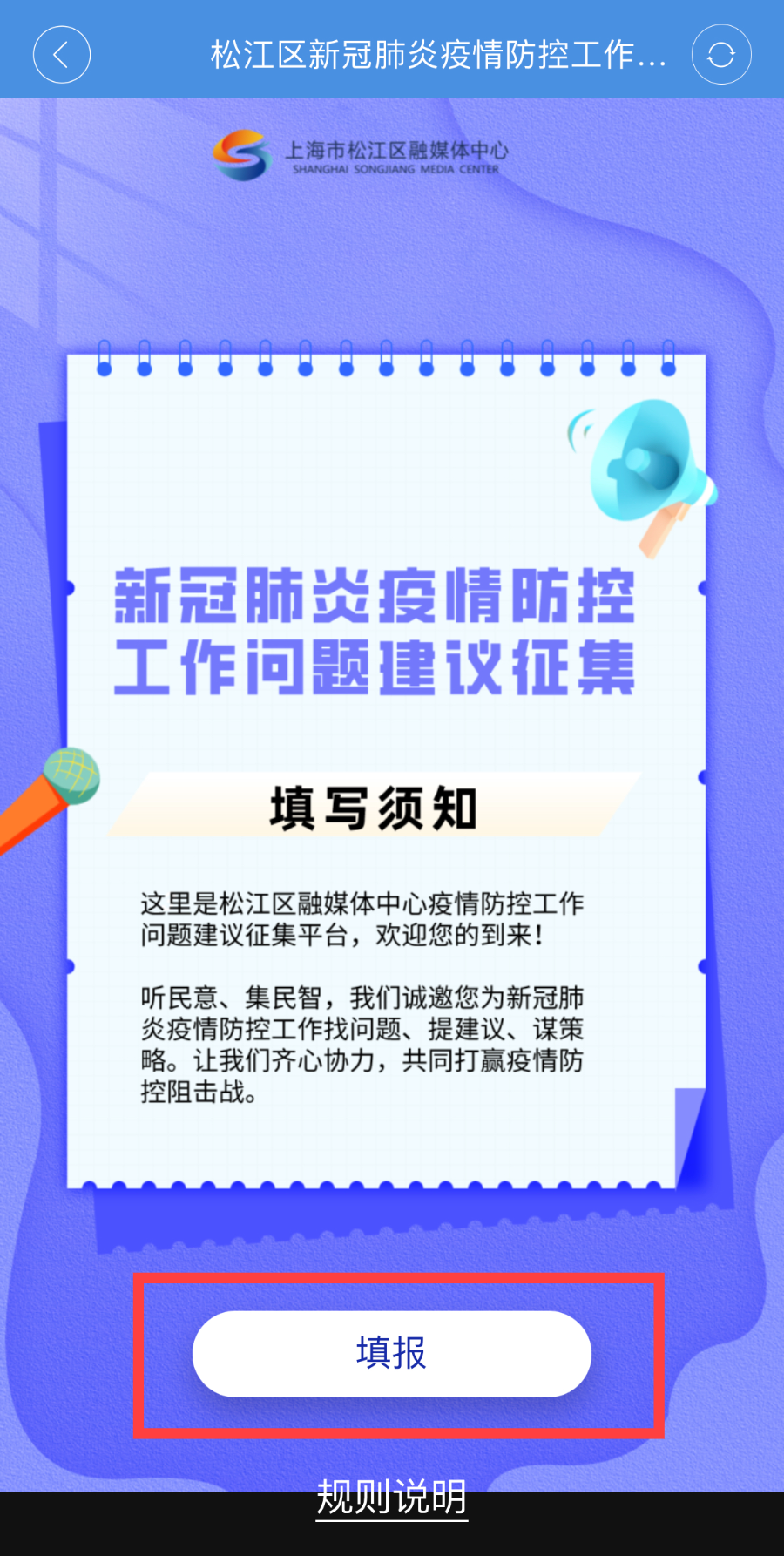 上海市松江区融媒体中心上线“松江区新冠肺炎疫情防控工作问题建议征集平台”,诚邀您为新冠肺炎疫情防控工作找问题、提建议、想方法。